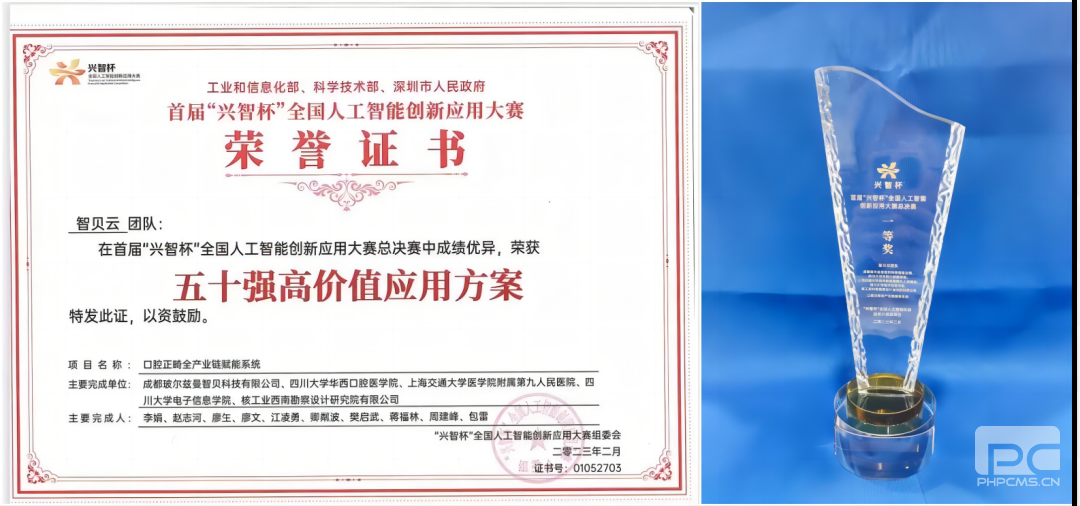 ↑“口腔正畸全工业链赋能系统”获兴智杯全国人工智能应用大赛一等奖、“五十强高价值应用计划”??